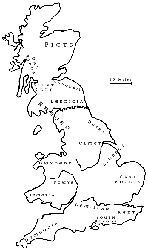 This map shows the approximate location of the main kingdoms in Britain in the early part of the seventh century. It should be noted that the boundaries of the kingdoms are not known with any certainty and probably fluctuated considerably over time according to the relative military strength of their own and neighbouring kings.